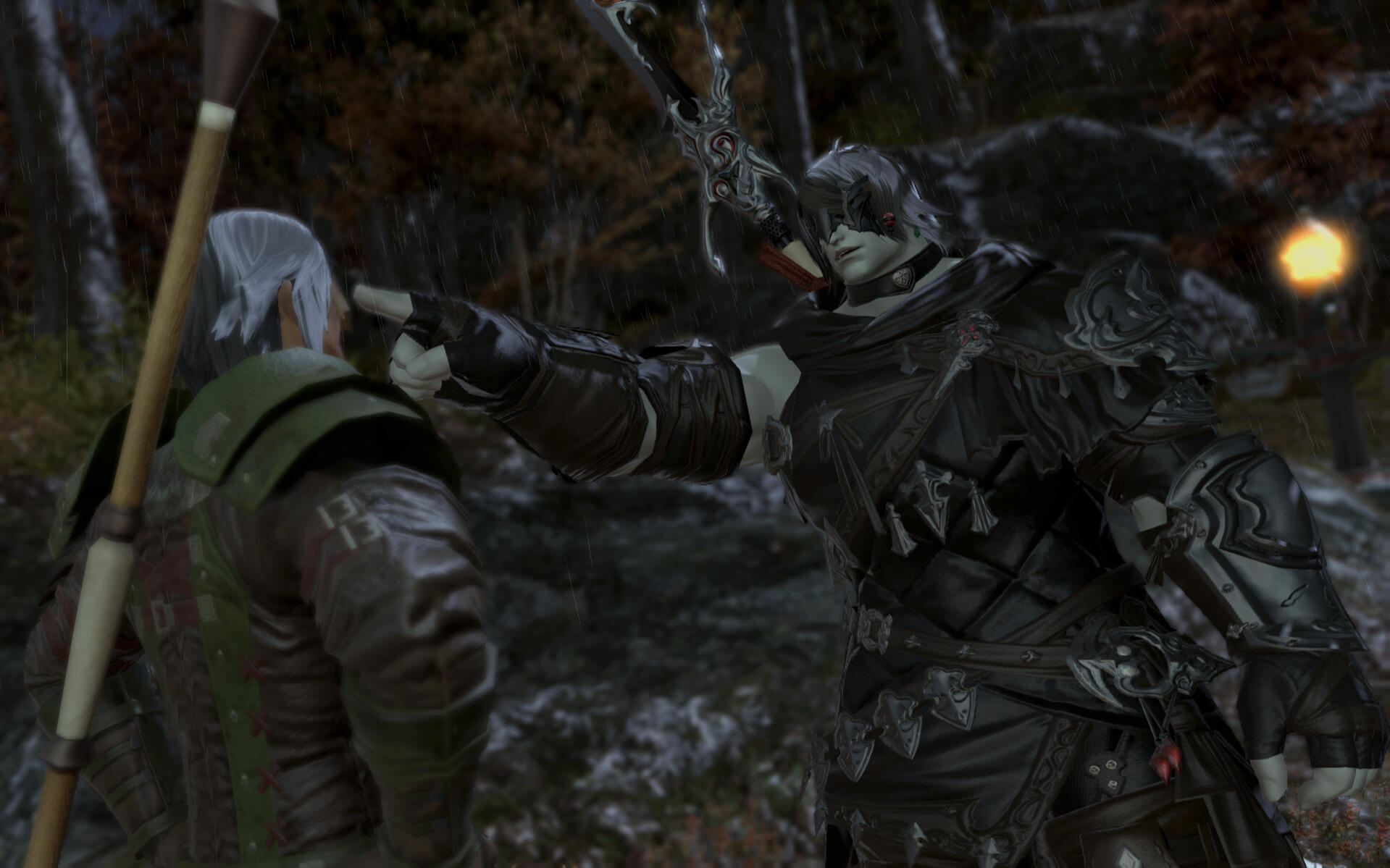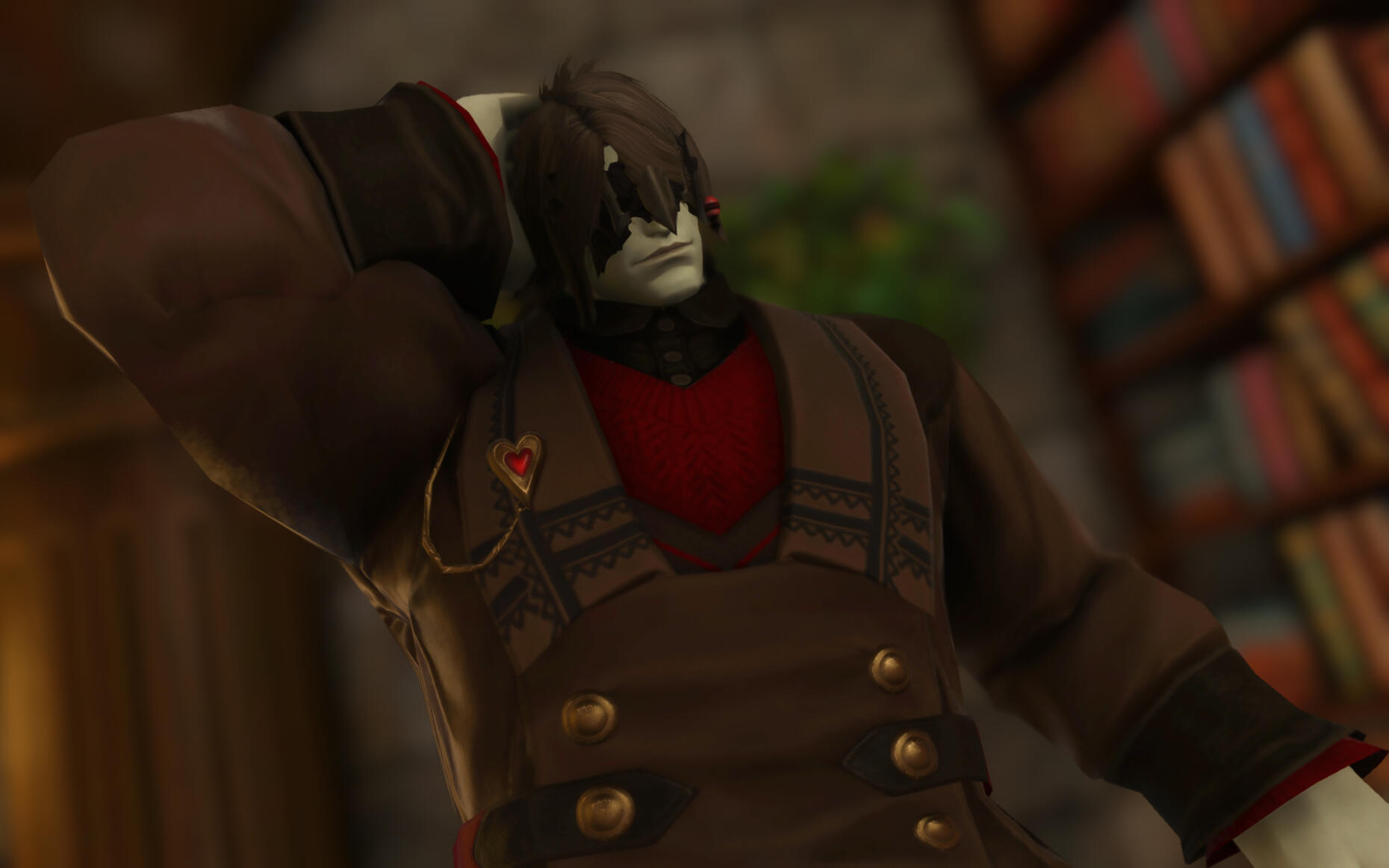 Eventually, he saved the life of his brother and friend. The gouges in his face left by coeurl claws kept him in bedrest. But when he finally stood again, Aleport thanked him with a caricature of himself snarling like a rabid, dying animal.At first, he refused it. But then he looked in the mirror and saw it, too. In the glass shattering, he heard the accusations in his own voice.And so he ran into the wilds, to hide away from himself and those who would see him as a beast as well.